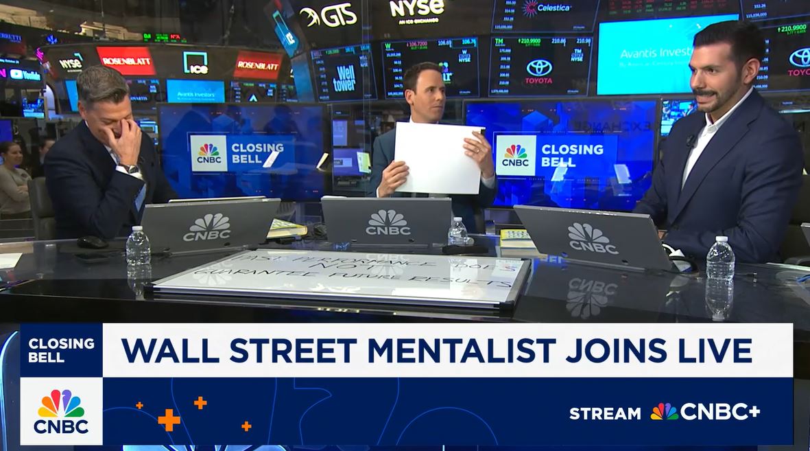 Judge declared at the 48-minute mark, "Final Trades coming up," which seems an awful lot of minutes to be conceding to ads. But Judge did return in a few minutes to have Amy Raskin talk about Chevy Chase Trust making the CNBC FA 100 list; Judge suggested scanning the QR code on the screen to see the whole list.