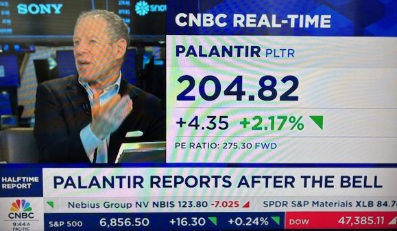 Carter also advised viewers to "take advantage" of weakness in NFLX by buying. Guy Adami said it's at a "logical level" to bounce, though Guy said it's been "squishy" perhaps because the market wonders why it thinks it needs to buy Warner Bros. assets. Dan Nathan noted that SPOT has struggled in tandem with NFLX, as Joe Terranova used to note in late summer while Joe kept touting both stocks while they've been dogs. (This writer is long NFLX and SPOT.)
