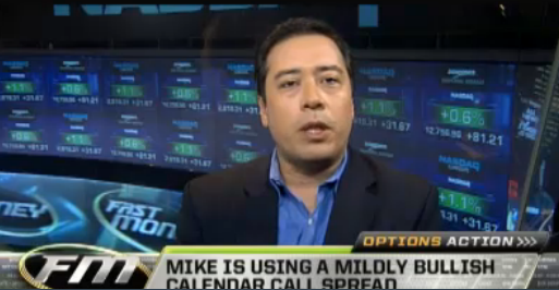 The screen text (above) actually said, "MIKE IS USING A MILDLY BULLISH CALENDAR CALL SPREAD."
