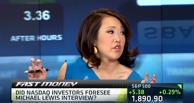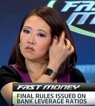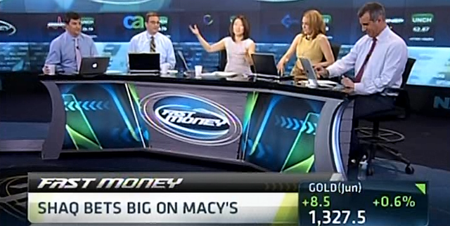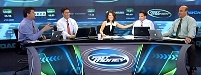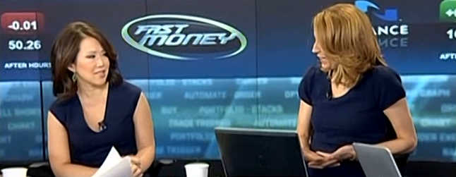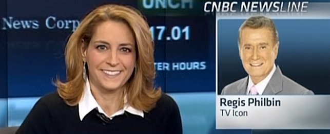 We were hoping/planning to not even mention Regis Philbin's chat with Wedneday's Fast Money, but 1) people Google that stuff, so we kinda have to, and 2) it actually wasn't that bad. (And 3), viewers got a good look at Karen Finerman in comfortable, chic white collar, breezy Southern California smile, phe ... nom ... e ... nal ...)