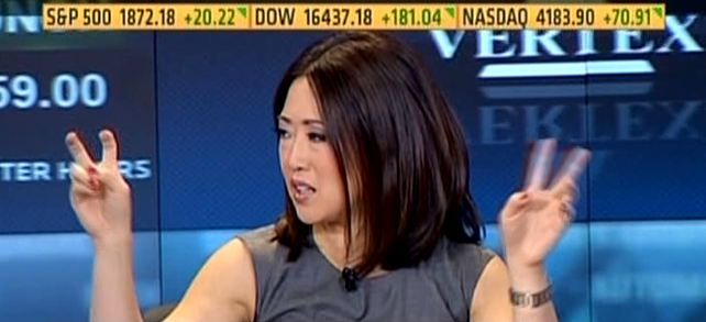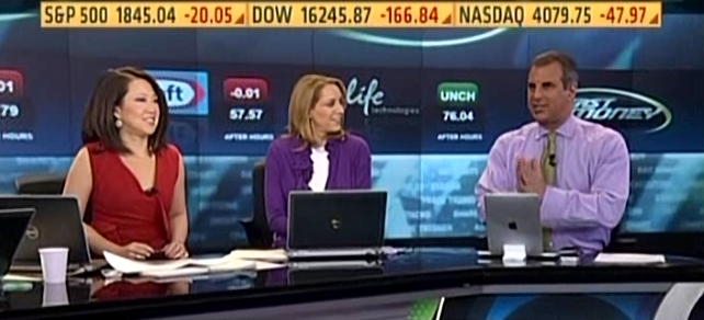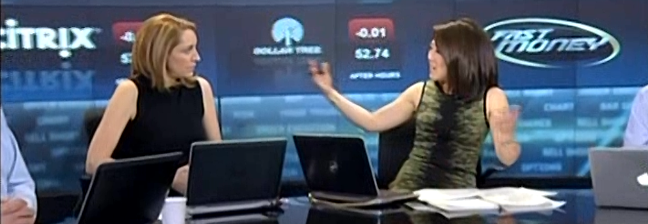 Karen Finerman explained, "Just because a stock's lower doesn't mean it's cheap," and for some reason singled out Pandora, which she bought for her personal account (translation: Clients, don't worry, not yours) and probably sold around the lows; "very disappointing earnings; I said that's it, I'm outta that one."