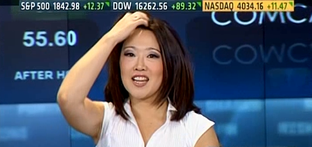 But Brynjolfsson was confused, apparently thinking Karen might somehow want to ask Brian Kelly or Dan Nathan or Guy Adami about this instead, and actually replied, "Is that for me, Melissa?"