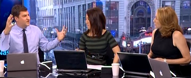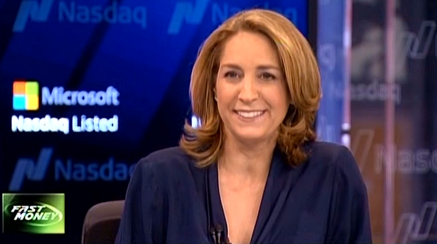 On Monday's Fast Money, Dan Nathan gave Mel (in cute green-stripe outfit) a chuckle with an "S car go" joke about TSLA, an upgrade from when he said last week that WMT has long been considered "you know, the ugly red-headed stepchild to Target." Nathan nevertheless bashed Karen Finerman's banks while Karen protested that they were flat in reaction to the weak-jobs-means-lower-rates data.