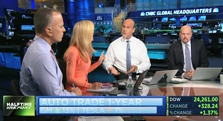 Kevin O'Leary also said he's eyeing energy. O'Leary gloated about the selling in Tesla and how it appears to be trading like a car company now. (He made the same point a couple hours later on Closing Bell; must've taken an Uber to Post 9.)