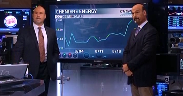 Mike Khouw reported buyers of the September 52 calls in DOW. Pete Najarian said there indeed has been activity in the name, and — brace yourself — because of that activity, he thinks the stock has upside.