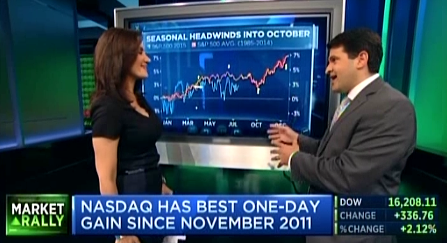 Tony Dwyer, maintaining his 2,340 (snicker) year-end S&P target, told guest host CNBC superfox Sara Eisen on Monday's Halftime Report that it's time to go "all in" on stocks (he said he made that call a week ago Monday) while conceding, "It's very possible that the market may retest that low" of last week.