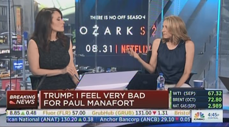 As the news of White House trouble rolled in Tuesday (8/21) afternoon, basically devouring the 5 p.m. Fast Money, Karen Finerman (who looked dynamite in blue) bluntly told guest host Michelle Caruso-Cabrera (equally dynamite) that President Pence "would not get re-elected."