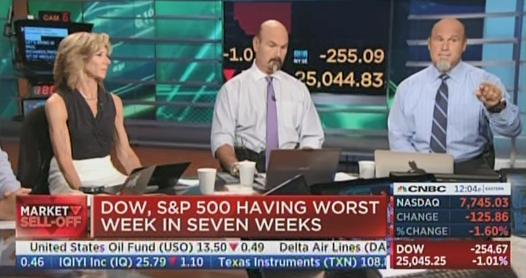 Guy Adami twice uncorked a bizarre fear-monger scenario, referring to FB's bogus-margin-forecast/PR-control-so-Congress-and-EU-don't-get-mad-it's-up-40%-since-Zuck testified slide, suggesting, "Who's to say the broader market couldn't do something along those lines," which he then defined as 5-8% (which is a lot less than FB's slide).
