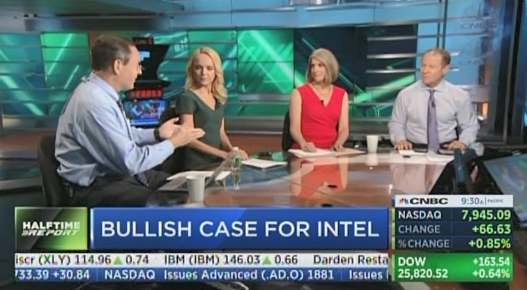 Wapner claimed, "For the first time in a while, real questions about tech." Jim Lebenthal, who on June 18 was saying 1) INTC is in Year 2 of the MSFT-like comeback and 2) you'll be sorry if you didn't buy it at that day's price ($53), for some reason jumped aboard, but Joshua Brown to his credit introduced sanity to the conversation, pointing to "recency bias" and stating, "Are we forgetting what Microsoft and Google had to say, like, 36 hours ago?"