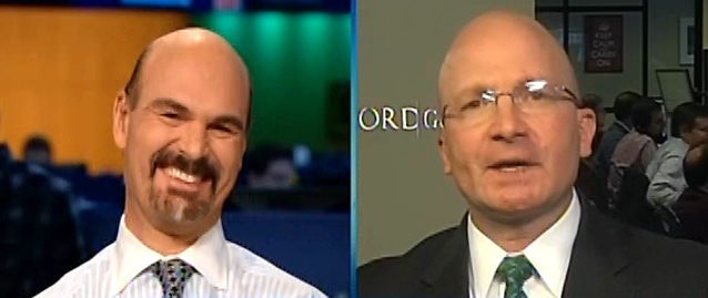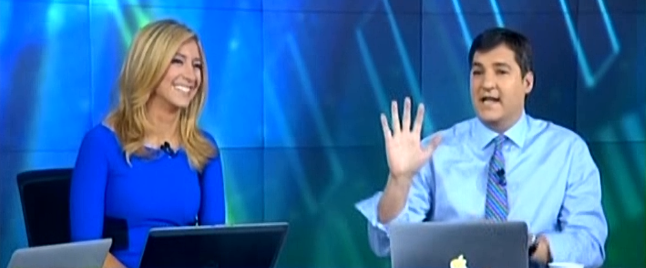 Morgan Brennan, who looked great, reported from wine.com's shipping hub and pointed out FDX was up on the day. Because of the satellite delay, Brennan didn't really get the joke fast enough about Doc's alcohol orders, which then allowed some time-killing inside jokes.