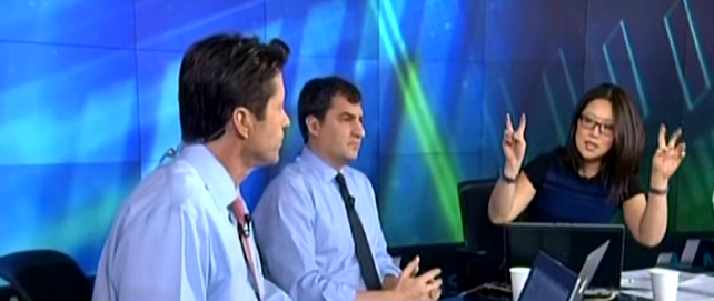Brian Sullivan, spending a day in North Dakota, told Judge that complicating the falling-oil problem is that the cost of fracking has gone up. Judge totally bungled the exchange, enabling dead air, and then adding a "no worries" (omg).