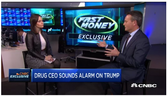 Halftime Report (and all-day CNBC) viewers had their socks knocked off Thursday by CNBC pharma reporter Meg Tirrell, who took her smashing leather jacket ensemble to the Forbes Healthcare Summit in New York and on Halftime sat down with Robert Nelsen, who predicts we'll get a "much more favorable regulatory environment." (That photo above is from a different time of day and different guest than Nelsen.)