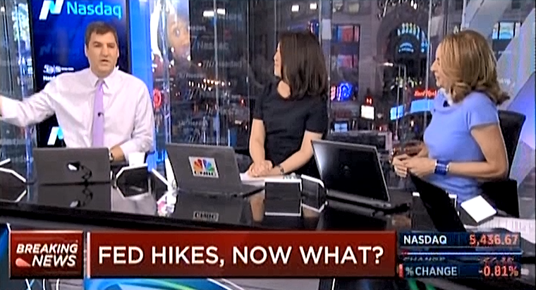 The 5 p.m. Fast Money needs a jolt of … something. It is less a show about trading than gratuitous chest-thumping about how bad the Fed is and how all these Wall Street knuckleheads have no clue about how bad the economy really is. Some panelists talk too much.