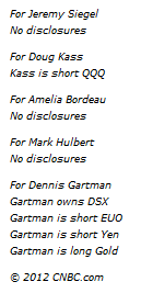 That's where Dennis Gartman jumped in, with a look of skepticism, saying that he's only been doing this 35 years, and the Fed chairman is telling you he wants you to be in, and so, "Why would you fade him ... why would you fade the Fed?"