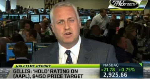 Gillis, whose camera ultimately ran amok, said that as the No. 1-ranked market cap, AAPL, "you know, it's only got, you know, it's only got room to fall," and said MSFT is more promising at this point, partly because 47% of machines out there are still running Windows XP.