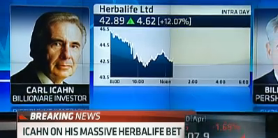 Judge also revealed Kyle Bass' remarks earlier in the day to Kaminsky regarding HLF, as Bass said, "I would never bet against Dan Loeb." Stephen Weiss said Loeb didn't just buy HLF willy-nilly, but "hedged it with the short in another company," and "I'd stay on the sidelines" with this one. Joe Terranova, in not the greatest pearl of wisdom of all time, said if HLF keeps sliding, "maybe that's an indication" people will no longer take the other side of Ackman.
