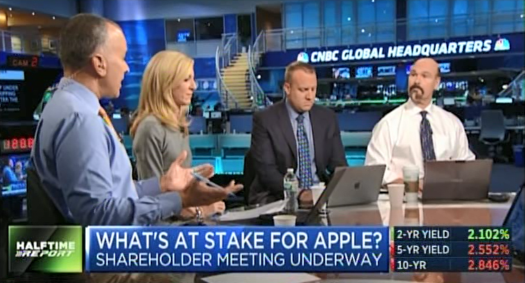 Judge on Monday's Halftime aired a clip of Warren Buffett's morning chat with Becky Quick, some of which centered on AAPL.