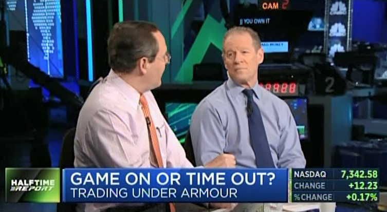 Jim Lebenthal on Wednesday's Halftime said he thinks the worst is over for UAA, stating he doesn't think it's "going up in a straight line" but that it's reached a value where private equity will take a look.