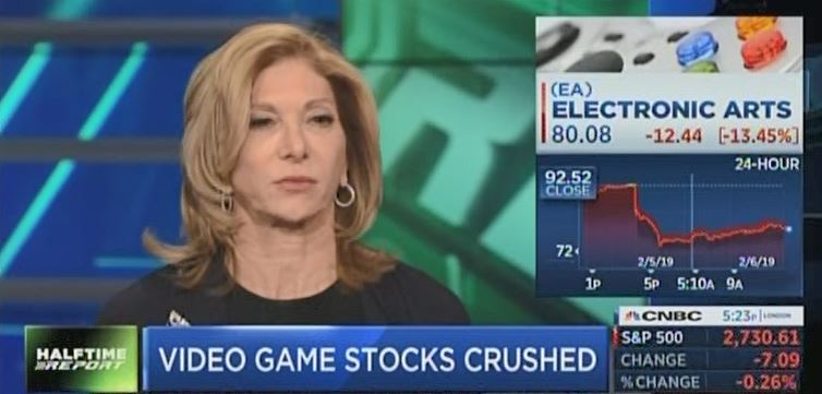 On Wednesday's (2/6) Halftime Report, Kari Firestone revealed, "We used to be a big fan of Electronic Arts, and, and, we're not now. We, we, uh, we saw the writing on the wall."