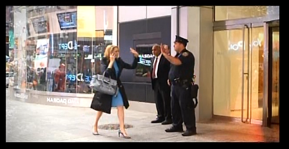 An apparent NYPD officer is seen sort of participating (we don't think it falls under the category of cops endorsing a product) in the new round of ads for that 5 p.m. show we don't watch anymore that debuted Monday on the Halftime Report, including snippets from Guy Adami explaining how he still sees lower rates and deflation how trading is all about the passion.
