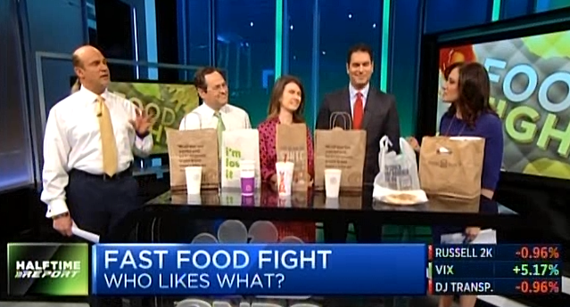 Pete Najarian took both sides, stating the problem is too many "menu" (sic) items while pointing out the company competes against popular niche eateries such as "Smack (sic) Shack."