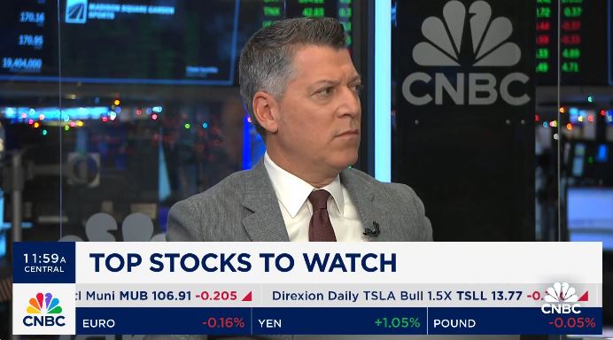 Brian Belski joined the show remotely; among his new buys are DIS and regional banks, saying he was "funding some of that" by selling NFLX that he bought when it was, of course, a lot lower.