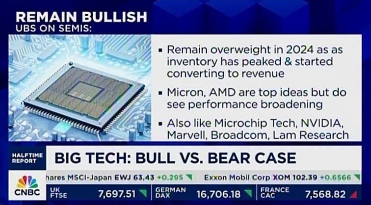 Judge started asking if the "AI 5" is the place to be; he said that a day earlier on Closing Bell, Glen Kacher "coined that AI 5," which is apparently MSFT, NVDA, AMD, TSM and AVGO. (But Kacher also likes META.)