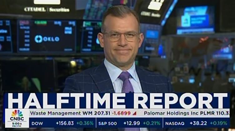 Judge announced at the start of Friday's (1/24) Halftime Report that Tom Lee is saying, "Stocks are goin' up for the right reason (snicker)," and Tom's got a 7,000 S&P target for mid-year, but curiously, only 6,600 by year-end.
