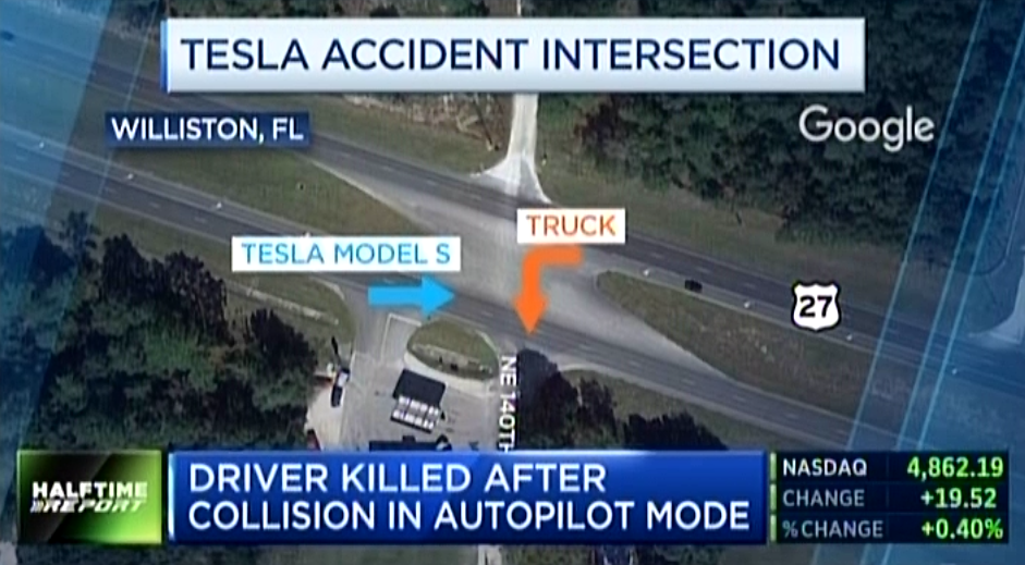 Phil LeBeau on Friday's Halftime Report explained how the Tesla Autopilot crash happened — although his graphic really didn't explain anything.