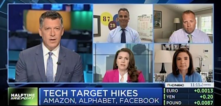 Judge on Wednesday's (6/10) Halftime wondered how anyone could make a "fundamental" case for FB with the stock being up 60% since the low, AMZN up 40%.