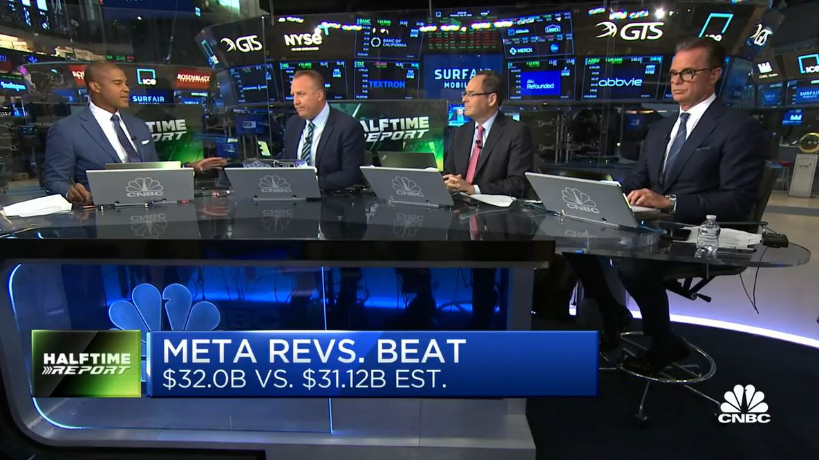 Halftime began with an assessment of that META call. Kari Firestone said META used to have "excess employees" and projects that were "very, very unprofitable," but even now with the gains, the stock is still "not expensive."