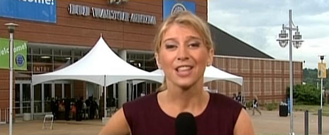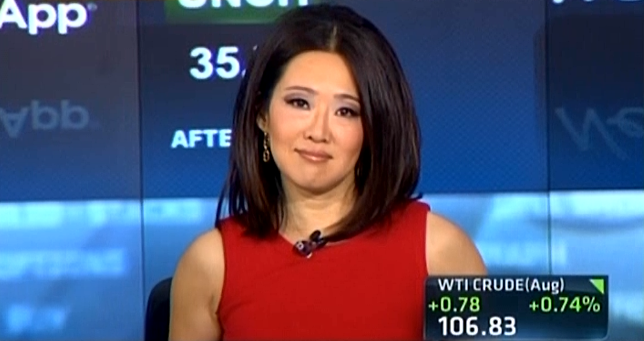 Sara Eisen — hair pulled back — looked great reporting from Wal-Mart's meeting, but the actual news (Doug McMillon has worked there a long time; it's a "massive, massive company," there are a lot of shareholders coming to the meeting, the entertainment at the meeting is really great, the company has faced pressures recently) was sort of at a discount.