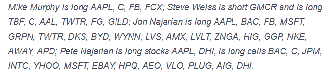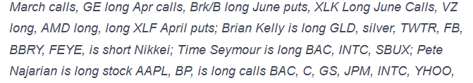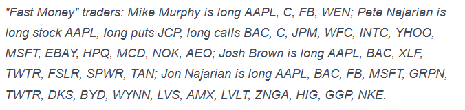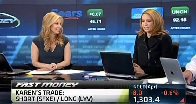 Seymour's Final Trade was SBUX with a 65 stop. Brian Kelly said GLD. (That sounds like the paper version not the physical.) Karen Finerman said to sell S&P puts if the market sells again Tuesday. Guy Adami said FUN.