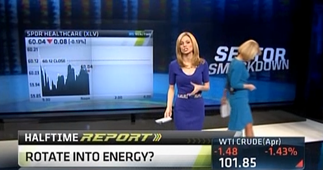 Here's the ledger. There were 21 trading days in March. Twice, the Halftime Report employed a 3-person panel. It should be noted that Steve Grasso delivered soundbites on the Halftime Report when not a panelist, and that Stephen Weiss and Mike Murphy both appeared on the March 31st Halftime as guests to discuss the Playbook competition.