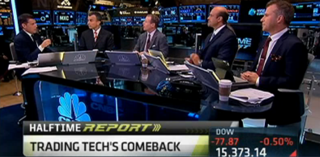 We pointed out in the Halftime Report log (see below) that Mark Cuban appears to be the most prominent HFT critic CNBC can find.