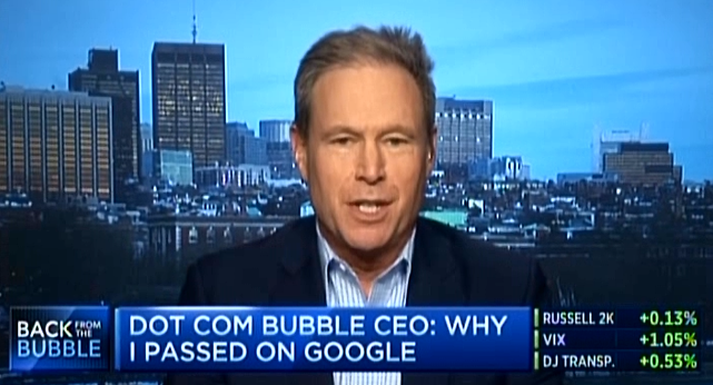 Former Excite.com CEO George Bell, as Wapner explained, was offered the chance to buy Google for less than a million dollars near the end of the dot-com bubble.