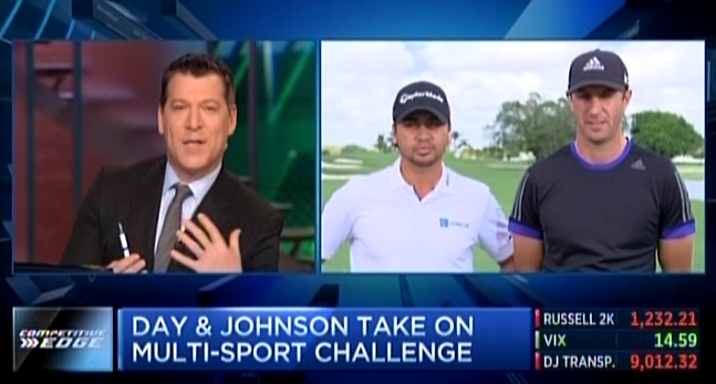 Speaking of company spokespersons, Judge and Dom Chu carried out a stumbling, rambling remote interview with Jason Day and Dustin Johnson and their workout routines; we sort of tuned it out and by the end of it didn't have any clue what they were talking about other than Johnson spending time in the weight room in a more "religious" way than before, and oh, by the way, they're going to be on the Golf Channel this week.
