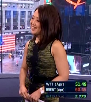 Karen Finerman (above), in her first appearance on the 5 p.m. show since turning a still-young (don't you dare say the number) last week (yes we're mixing both shows here), wore a new set of pearls with a new hairstyle, had a quiet show and was heard to say "Bank America" (sic).