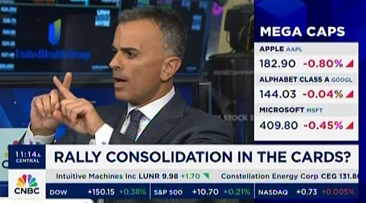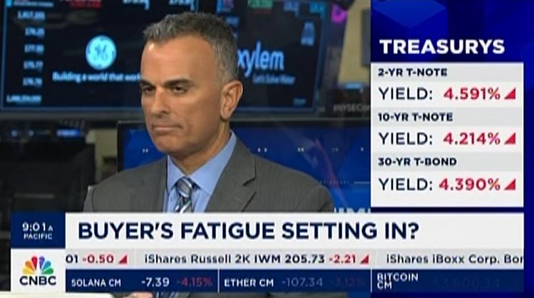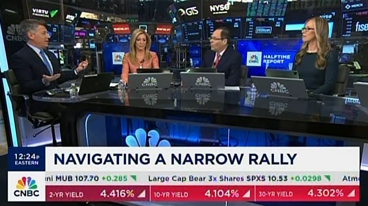 Joe Terranova said the 10-year is trading at 4.17%. Joe said the "composition" of YTD performance is "troubling," with more than half the S&P being negative.