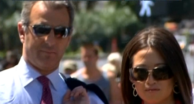 Perhaps we can make it up to Mel for the air quotes observation by pointing out she looked dynamite in the foxy white dress she packed for her latest western trip, and new hairstyle, and our offer for dancing still stands.