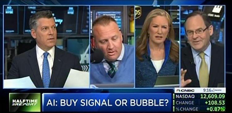 At least Halftime Report viewers didn't have to listen to another day of Josh Brown talking about NVDA on Wednesday (5/31). But Joe Terranova took up the mantle in regard to AVGO, stating AI stocks are indicating that a "potential for a near-term top is in place."