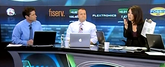 Starting with a brief go-round in Englewood Cliffs, then shipped off to London, then shipped back to Squawk on the Street, and now plugged into Closing Bell, all in barely a year and a half, Evans is struggling mightily in two areas, neither of which is her fault: She lacks long-term camaraderie with her colleagues, and she is still raw around the camera.