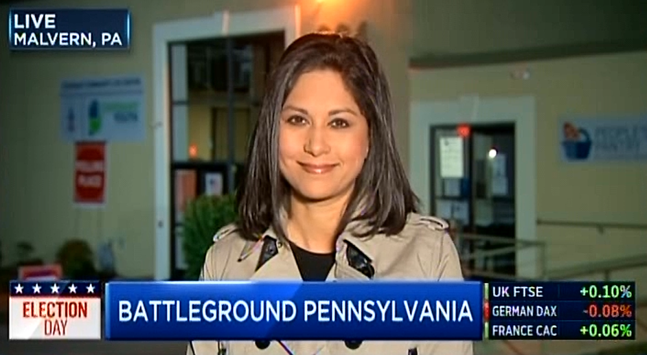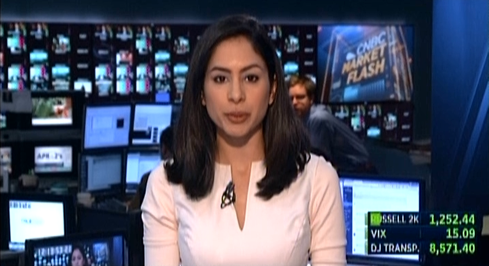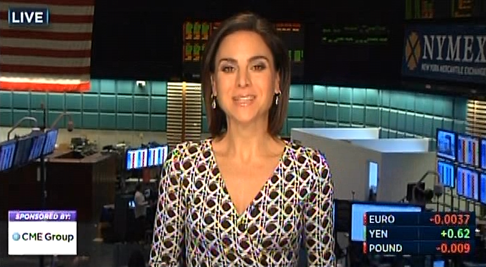 Seema Mody looked dynamite and sophisticated in white jacket — she even unbuttoned it during the European close report which airs for a couple weeks this time of year during Halftime Report while we're in time-change limbo — though her pronunciation of "attributing" seemed a bit off.