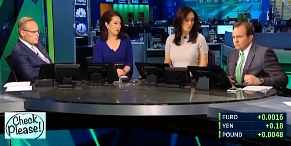 Mel, in gorjus black or navy ensemble, should've done the 5 p.m. Fast Money standing.