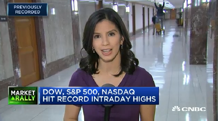 This lasted into Power Lunch. We're not sure when the stocks returned. (In the meantime, it gave us the incentive to turn on Gasparino's channel, whose stock ticker was indeed working.)