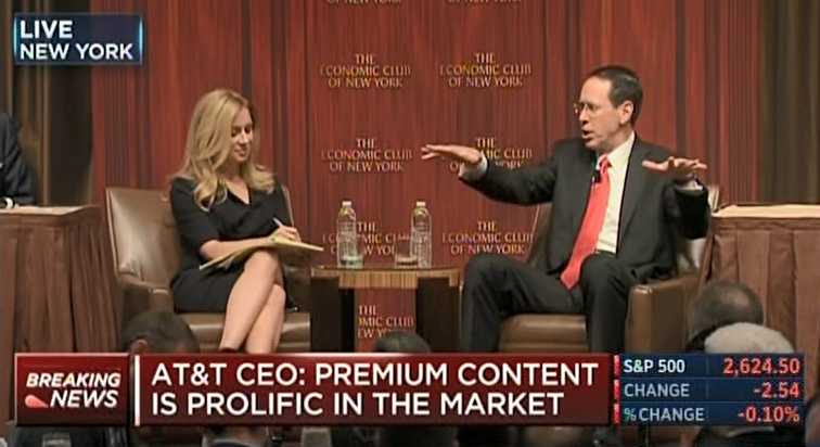 Stephenson explained what he says is the beef against his TWX deal. "The government contends that with AT&T with 25 million subscribers, that, uh, somehow we have market power," he said. "We don't understand that." (Translation: We understand it perfectly; it's the argument we prepared for in defending this deal for the last 12 months.)