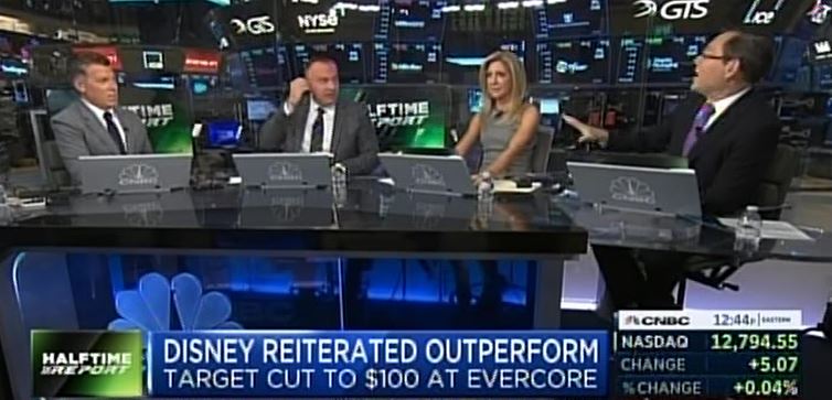 Jim Lebenthal explained why he bought NKE during the rather argumentative episode of the Halftime Report on Tuesday (10/3). (We thought he was going to say, "Like Stephanie says, the earnings went up over time.") First he said, "Buy great companies." Then he compared NKE with DIS and said the 3-year charts are "almost identical," however, NKE is not going through an "industry transformation."