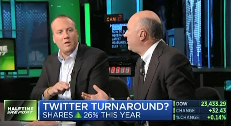 Nobody on Tuesday's Halftime was touching the stock. "You're hoping uh that Kevin has thrown in the kitchen sink here," said Joe Terranova, but as for buying the stock, "absolutely not."