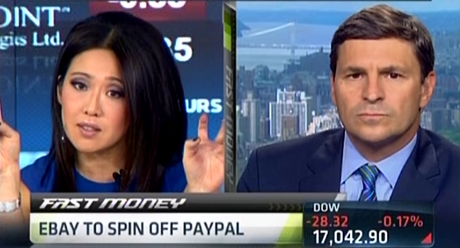 David Faber, who is rarely on this program, told Karen Finerman he "can't fully answer" why John Donahoe did a 180 on spinning off PayPal.