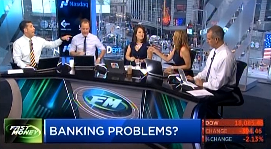 On the 5 p.m. Fast Money, another program in which everyone opined on what DB might be like while assuring viewers that they're not saying it's the same thing as other notorious situations, Karen Finerman said, "I don't think that this Deutsche Bank situation can exist that long."